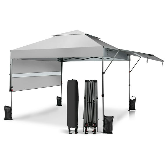 Costway 10’x17.6’Outdoor Instant Pop-up Canopy Tent Dual Half Awnings Adjust Patio Gray