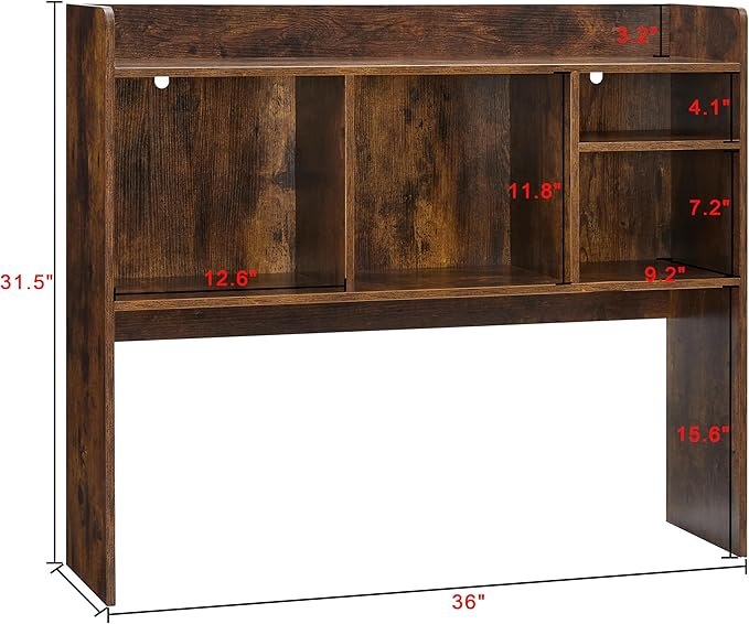 Desktop Bookshelf, Wooden Desk Storage Hutch with 6 Shelves for Computer Desk (WHITE)
